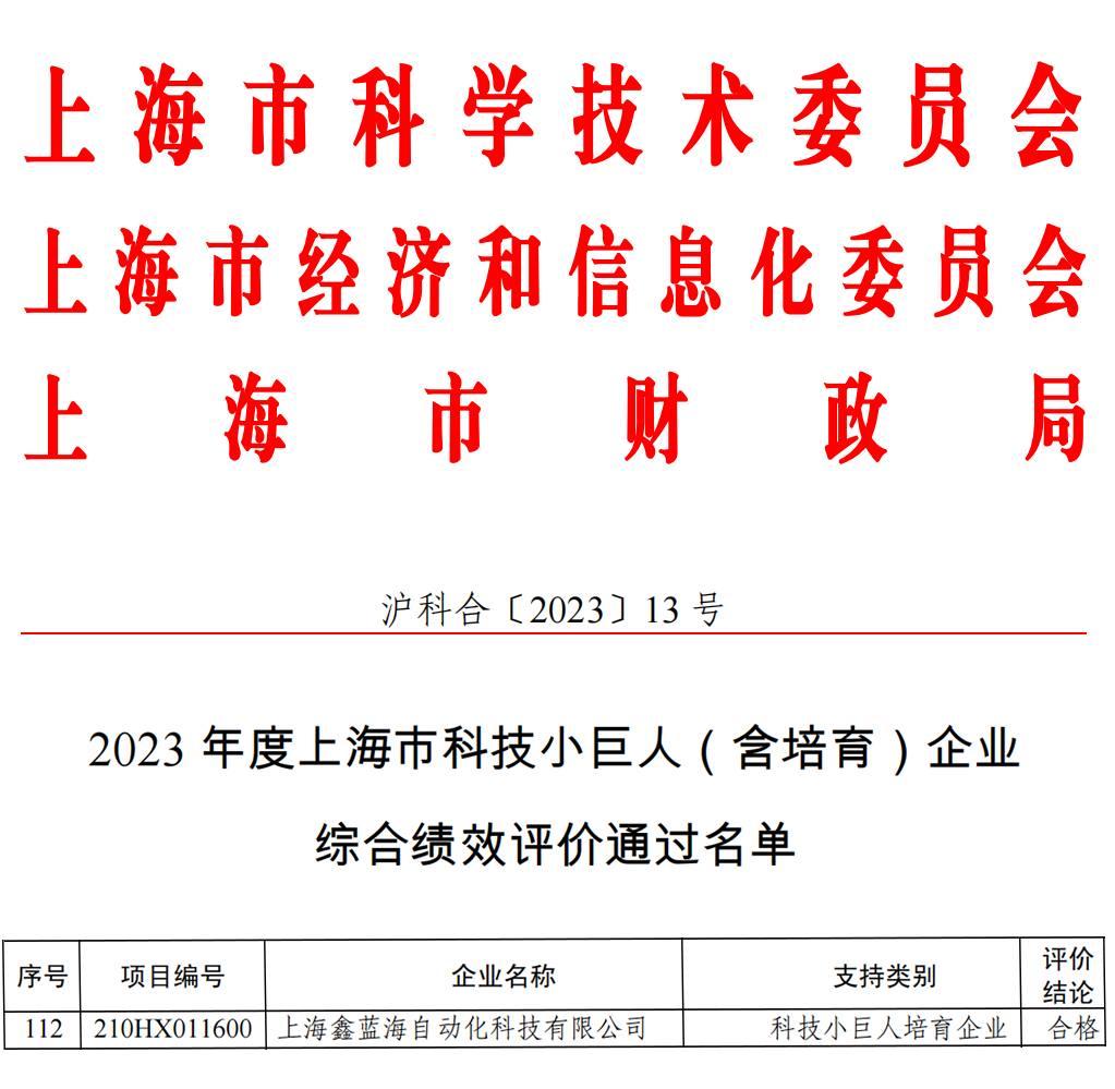 Recently, the Shanghai Municipal Science and Technology Commission publicized the "Notice on the announcement of the comprehensive performance evaluation results of 2023 Shanghai Science and Technology Small Giant (including cultivation) enterprises", after independent declaration and comprehensive performance evaluation, Xinlanhai successfully passed the acceptance!