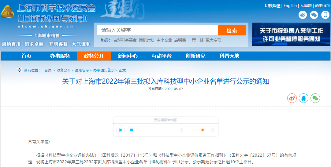 • 5月7日,鑫藍海成功獲得“上海市2022年第三批科技型中小企業”稱號。