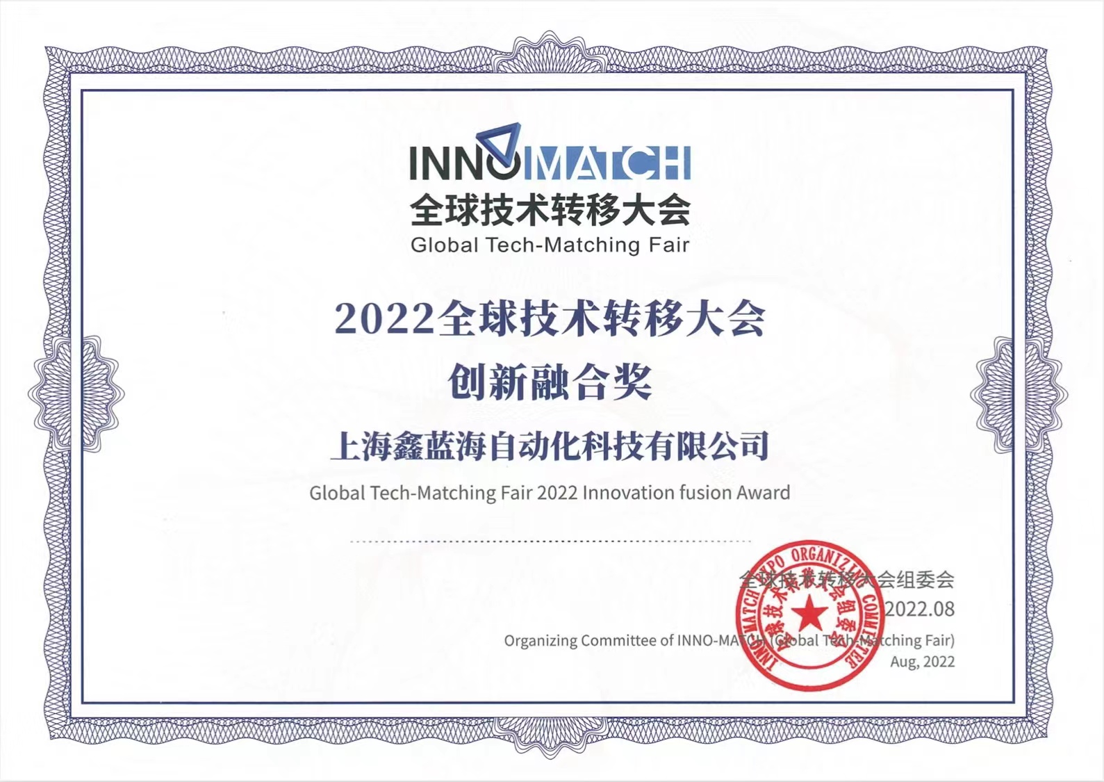 • 8月28日,鑫藍海在2022全球技術轉移大會上,成功獲得了“創新融合獎”。