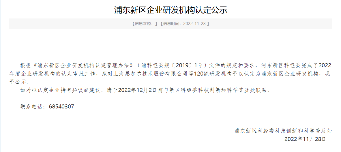 喜報 | 鑫藍海榮獲“2022年度浦東新區企業研發機構”認定!