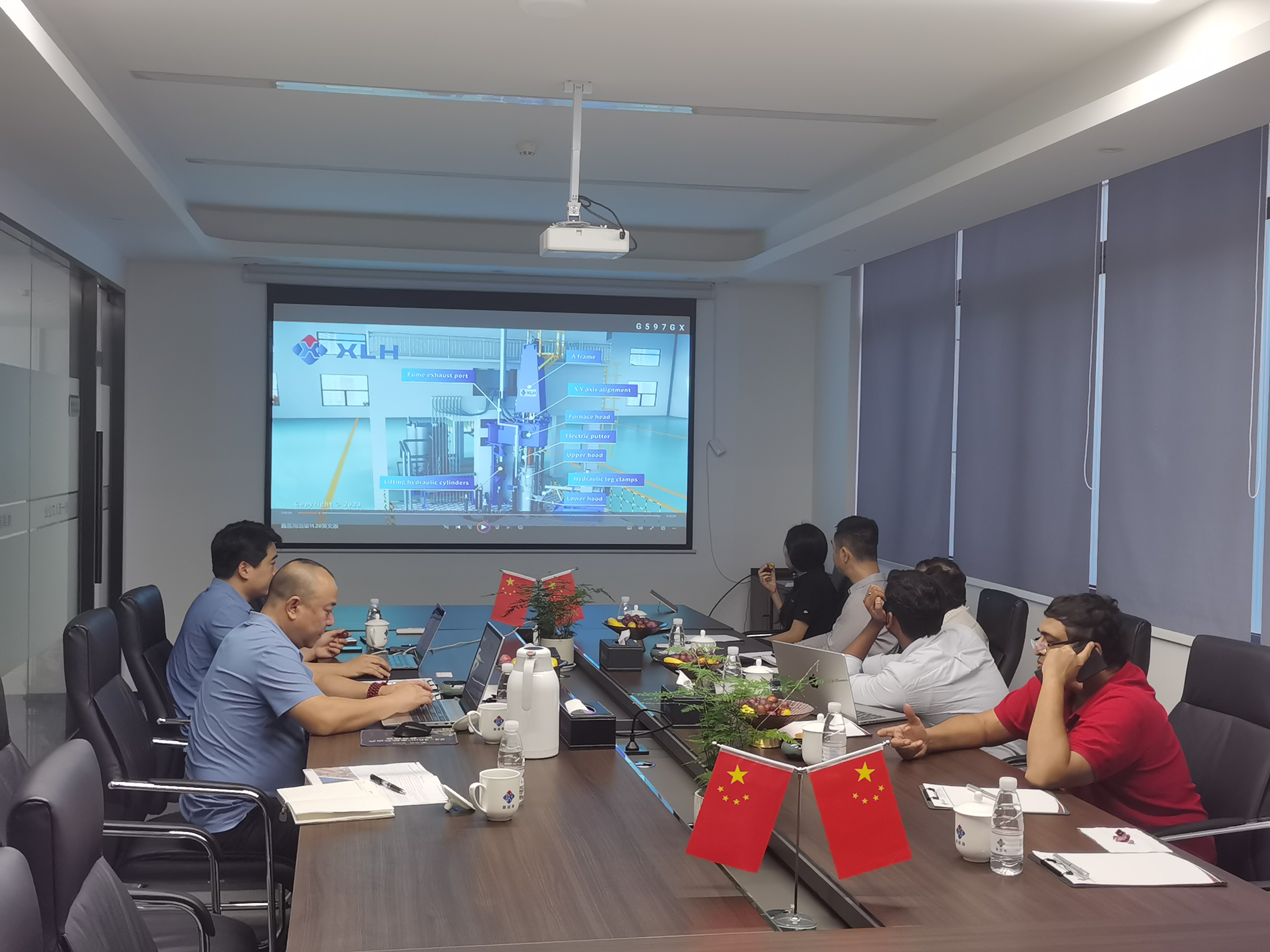 考察伊始,雙方在生產基地會議室舉行技術交流會。銷售團隊圍繞鑫藍海自主研發的真空感應熔煉爐及電渣重熔爐,進行了系統性的講解與演示。