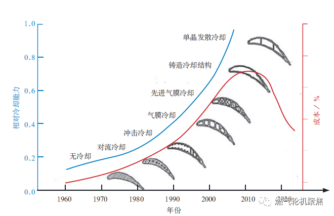 從各種冷卻技術的應用來看, 燃氣輪機在新技術、新材料的使用上較為滯后,傾向于更可靠、更低成本的設計 ;